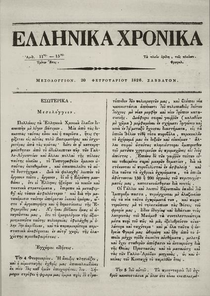 Στην περίπτωση των «Ελληνικών Χρονικών», ο Λόγος και τα Όπλα συμβάδισαν για περισσότερα από δύο χρόνια. Η εφημερίδα δημοσίευσε πραγματείες συνταγματικού δικαίου, όταν οι βόμβες των τουρκοαιγυπτιακών στρατευμάτων στο πολιορκημένο Μεσολόγγι «έπεφταν βροχή». Μάλιστα λέγεται ότι ο Ιμπραήμ είχε δώσει εντολή στους στρατιώτες του να στοχεύουν εναντίον του τυπογραφείου των Ελληνικών Χρονικών.