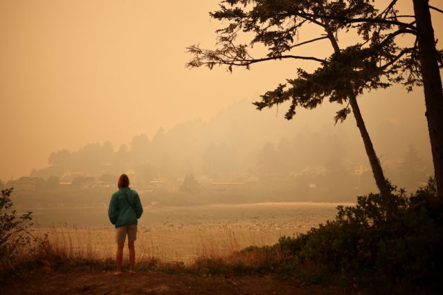 Ισχυροί άνεμοι και καύσωνας τροφοδοτούν σχεδόν 100 πυρκαγιές από άκρη σε άκρη στις Δυτικές Πολιτείες των ΗΠΑ. Το Oρεγκον είναι η πολιτεία που έχει πληγεί σφοδρότερα, καθώς περιοχή με διπλάσια έκταση από την πόλη της Νέας Υόρκης έχει τυλιχθεί στις φλόγες.