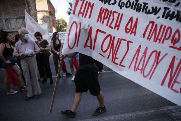 Θεσσαλονίκη : Σε εξέλιξη η πορεία – Μπλόκο των ΜΑΤ μπροστά από το ΑΠΘ
