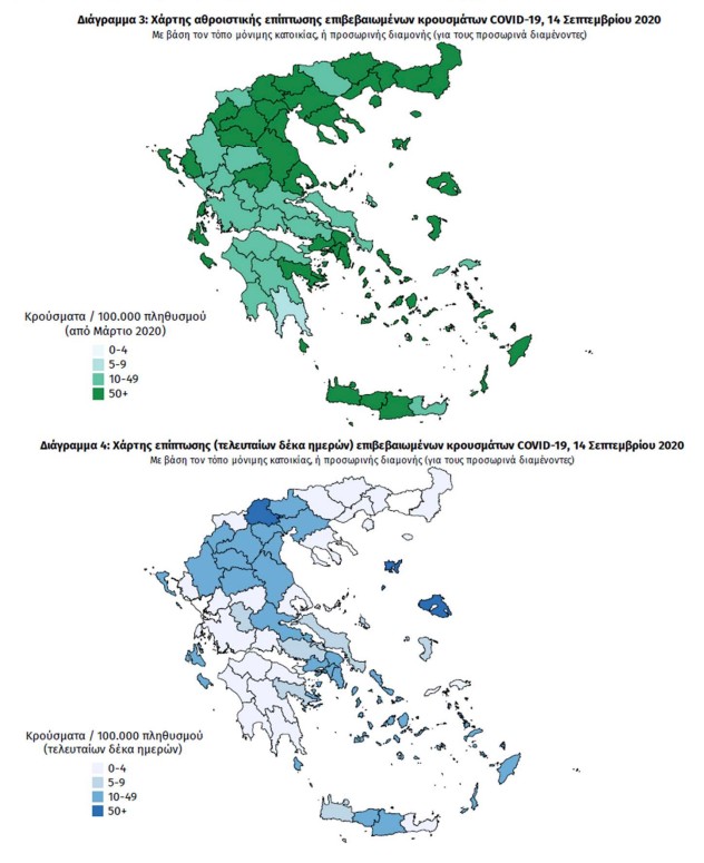 Ο χάρτης αποτυπώνει τη γεωγραφική κατανομή των συνολικών κρουσμάτων COVID-19 (από την αρχή της επιδημίας) ανά Περιφερειακή Ενότητα της χώρας, με βάση την δηλωθείσα διεύθυνση μόνιμης κατοικίας του ασθενούς, ή τη διεύθυνση προσωρινής διαμονής για τους τουρίστες και άλλους προσωρινά διαμένοντες στην Ελλάδα. Συμπεριλαμβάνονται τόσο κρούσματα με ιστορικό ταξιδίου (“εισαγόμενα”) όσο και κρούσματα με πιθανή εγχώρια μετάδοση.
