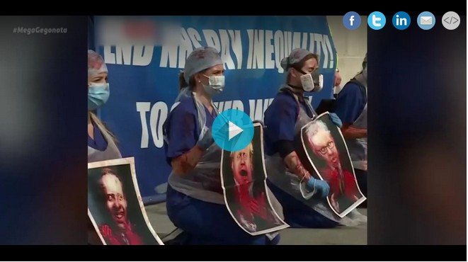 Φορώντας ποδιές βαμμένες με κόκκινη βαφή και φωνάζοντας το σύνθημα «σταματήστε τα χειροκροτήματα, αρχίστε να πληρώνετε» διαδήλωσαν εκατοντάδες εργαζόμενοι στο Σύστημα Υγείας της Μεγάλης Βρετανίας.