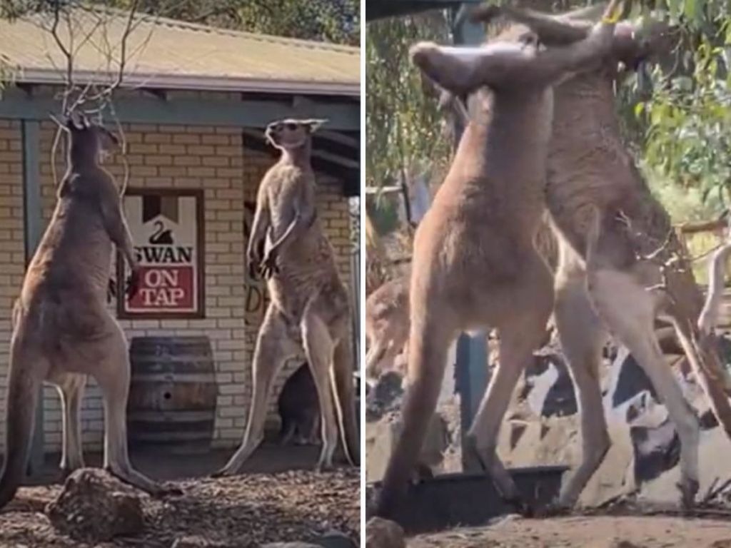 Άγριο ξύλο έξω από παμπ μεταξύ δύο… καγκουρό!