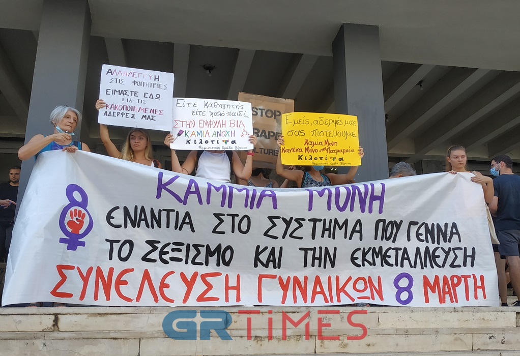 Συγκέντρωση αλληλεγγύης πραγματοποιήθηκε νωρίς το πρωί της Τετάρτης στο Δικαστικό Μέγαρο Θεσσαλονίκης, με αφορμή την έναρξη της δίκης καθηγητή γυναικολογίας του τμήματος Μαιευτικής της Θεσσαλονίκης, μετά από καταγγελίες για συστηματική σεξουαλική παρενόχληση φοιτητριών του τμήματος.