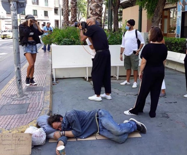 Θύελλα αντιδράσεων έχει προκαλέσει τις τελευταίες ώρες στα μέσα κοινωνικής δικτύωσης η εικόνα που δείχνει τον γνωστό φωτογράφο, Δημήτρη Σκουλό να φωτογραφίζει στο κέντρο της Αθήνας ένα μοντέλο και ακριβώς δίπλα του ένας άστεγος να κοιμάται