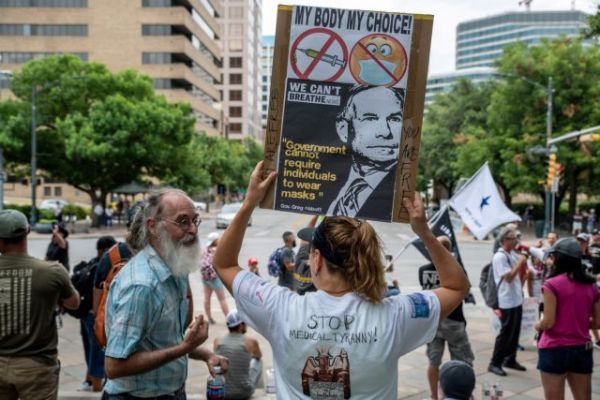 Οι εικόνες δείχνουν ένα έθνος σε διχασμό. Βίντεο που κυκλοφόρησε ευρέως στα κοινωνικά δίκτυα δείχνει μια διαδήλωση στη Γιούτα, στο πλαίσιο της οποίας οι συμμετέχοντες έλεγαν πως η υποχρεωτική χρήση μάσκας στα σχολεία παραβιάζει το Σύνταγμα και ισοδυναμεί με κακοποίηση ανηλίκων. Εκεί ήταν και ο Χέρμαν Κάιν, πρώην υποψήφιος για την προεδρία με τους Ρεπουμπλικάνους, ο οποίος είχε παρευρεθεί και σε συγκέντρωση του Τραμπ στην Οκλαχόμα, χωρίς μάσκα. Λίγες εβδομάδες αργότερα πέθανε, αφού βγήκε θετικός σε κοροναϊό.