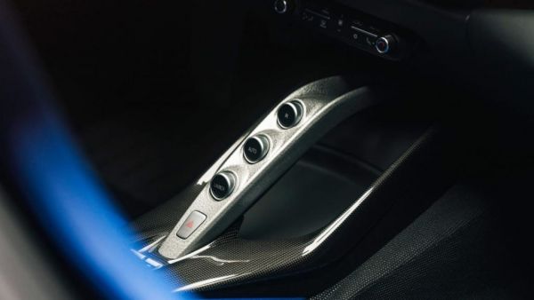Το εσωτερικό θυμίζει πολύ περισσότερο την 812 Superfast ωστόσο δεν λείπουν και εκεί οι ιδιάζουσες λεπτομέρειες όπως τα μπλέ καθίσματα τα οποία επενδύονται από δέρμα και Alcantara, τα μεταλλικά στοιχεία που έχουν φινιριστεί ώστε να θυμίζουν ορισμένα από τα πιο διάσημα αγωνιστικά αυτοκίνητα της Ferrari. Υπό το ίδιο ρετρό σκεπτικό έχουν σχεδιαστεί επίσης στοιχεία όπως οι χειρολαβές και η κεντρική κονσόλα παραπέμποντας σε κλασικές Ferrari όπως η 250 LM και η 250 GTO.