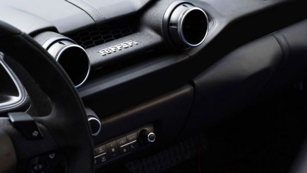 Το εσωτερικό θυμίζει πολύ περισσότερο την 812 Superfast ωστόσο δεν λείπουν και εκεί οι ιδιάζουσες λεπτομέρειες όπως τα μπλέ καθίσματα τα οποία επενδύονται από δέρμα και Alcantara, τα μεταλλικά στοιχεία που έχουν φινιριστεί ώστε να θυμίζουν ορισμένα από τα πιο διάσημα αγωνιστικά αυτοκίνητα της Ferrari. Υπό το ίδιο ρετρό σκεπτικό έχουν σχεδιαστεί επίσης στοιχεία όπως οι χειρολαβές και η κεντρική κονσόλα παραπέμποντας σε κλασικές Ferrari όπως η 250 LM και η 250 GTO.