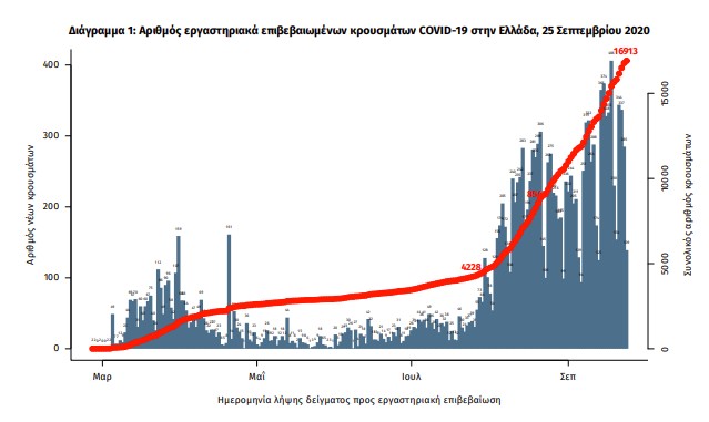 Έτσι, ο συνολικός αριθμός των κρουσμάτων είναι 16.913, εκ των οποίων το 55.7% άνδρες, ενώ 2.763 (16.3%) θεωρούνται σχετιζόμενα με ταξίδι από το εξωτερικό και 7.028 (41.6%) είναι σχετιζόμενα με ήδη γνωστό κρούσμα.