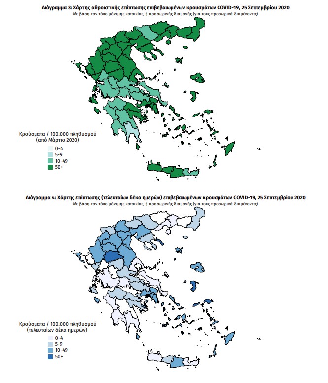 Από τα 286 κρούσματα, τα 163 εντοπίζονται στην Περιφέρεια Αττικής, εκ των οποίων 13 συνδέονται με γνωστές συρροές, ενώ 9 αναφέρουν πρόσφατο ταξίδι στο εσωτερικό της χώρας.