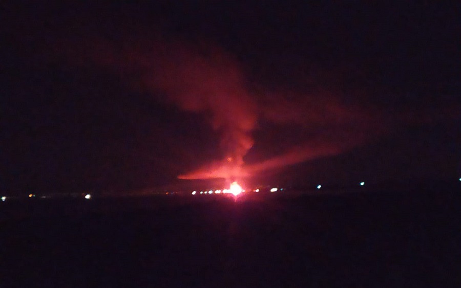 Η πυρκαγιά στο beach bar όπως φαίνεται από μακριά. Φωτογραφία από τη σελίδα Θερμαϊκού Δρώμενα στο facebook.