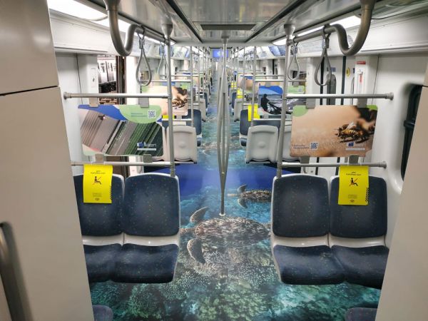Από τις 21 Σεπτεμβρίου και για το επόμενο διάστημα, οι συρμοί στην γραμμή ΙΙ του μετρό αναμορφώνονται με εικόνες του φυσικού περιβάλλοντος από κάθε γωνία της Ευρώπης μας. Από τα κρυστάλλινα νερά της Μεσογείου μέχρι τις παγωμένες Άλπεις, η χλωρίδα και η πανίδα της Ευρώπης καλεί τους επιβάτες να ζήσουν «πράσινα», διατηρώντας τις ισορροπίες του φυσικού περιβάλλοντος στο πλαίσιο της αποκατάστασης της βιοποικιλότητας και της μείωσης της ρύπανσης.
