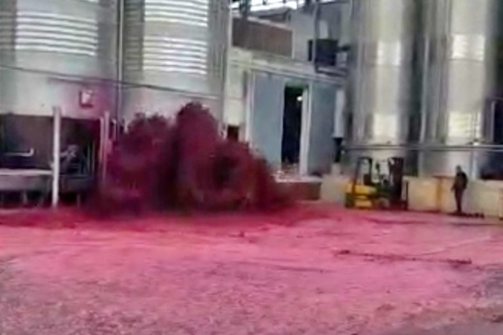 Μια δυσλειτουργία σε εγκατάσταση αποθήκευσης κρασιού στη νοτιοανατολική Ισπανία προκάλεσε έναν χείμαρρο κόκκινου κρασιού, που με τη σειρά του δημιούργησε μια λίμνη!
