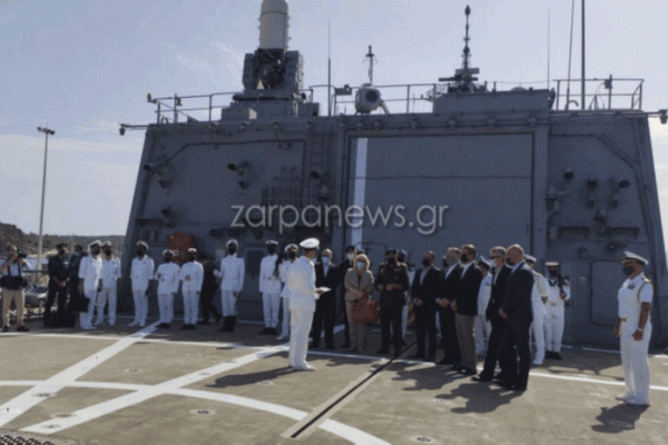 Αμέσως μετά οι δύο άνδρες ξεναγήθηκαν στην ελληνική φρεγάτα Σαλαμίς που βρίσκεται στο ναύσταθμο.