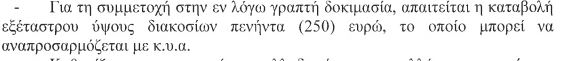 Σύμφωνα με το σχέδιο νόμου που κατατέθηκε στη Βουλή, οι εξετάσεις θα πραγματοποιούνται δύο φορές το χρόνο και για την συμμετοχή στον γραπτό διαγωνισμό θα απαιτείται εξέταστρο 250 ευρώ. Επιπλέον θα πρέπει να καταβάλλουν 550 ευρώ υπό τη μορφή παραβόλου για την υποβολή της αίτησης, το κόστος της πολιτογράφησης ανεβαίνει στα 800 ευρώ.