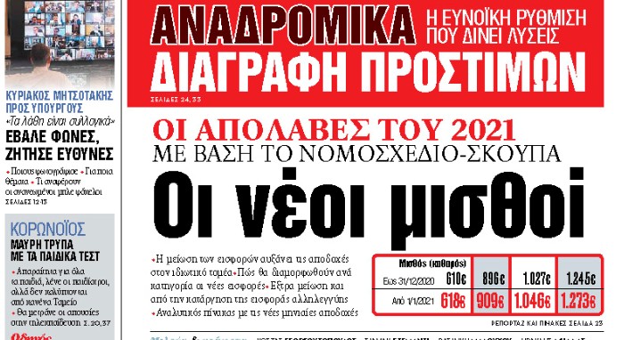 Στα «ΝΕΑ» της Πέμπτης: Οι νέοι μισθοί