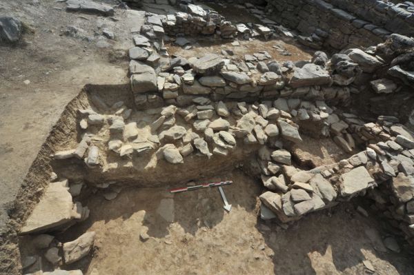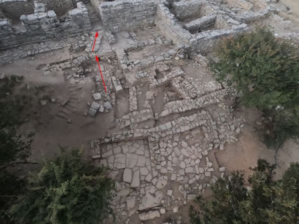Στο επίπεδο της ΥΜ ΙΑ περιόδου (περί το 1650 π.Χ.) αποκαλύφθηκαν τρία λίθινα ανοίγματα (αγωγοί αποστράγγισης) (Φωτ. 3) των χώρων του Κεντρικού Κτηρίου και των δυτικών διαμερισμάτων που προσκολλήθηκαν σε αυτό αμέσως μετά την καταστροφή του, περί το 1650 π.Χ. (Συγκρότημα I).