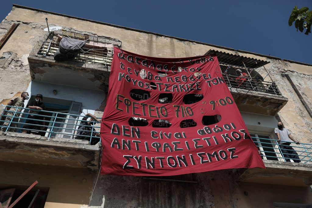 Στα Προσφυγικά αναρτήθηκε γιγαντοπανό, το οποίο γράφει «Τον φασισμό βαθιά κατάλαβέ τον, δεν θα πεθάνει μόνος τσάκισέ τον».