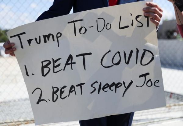 Σε αυτό ευνοήθηκε και από το γεγονός ότι ο Τραμπ έκανε διάφορες όχι απαραίτητα συνεκτικές δηλώσεις σε σχέση με την πανδημία, φτάνοντας μέχρι του σημείου να φαίνεται ότι αμφισβητεί τους ειδικούς, κάτι που το εκμεταλλεύτηκαν οι Δημοκρατικοί.