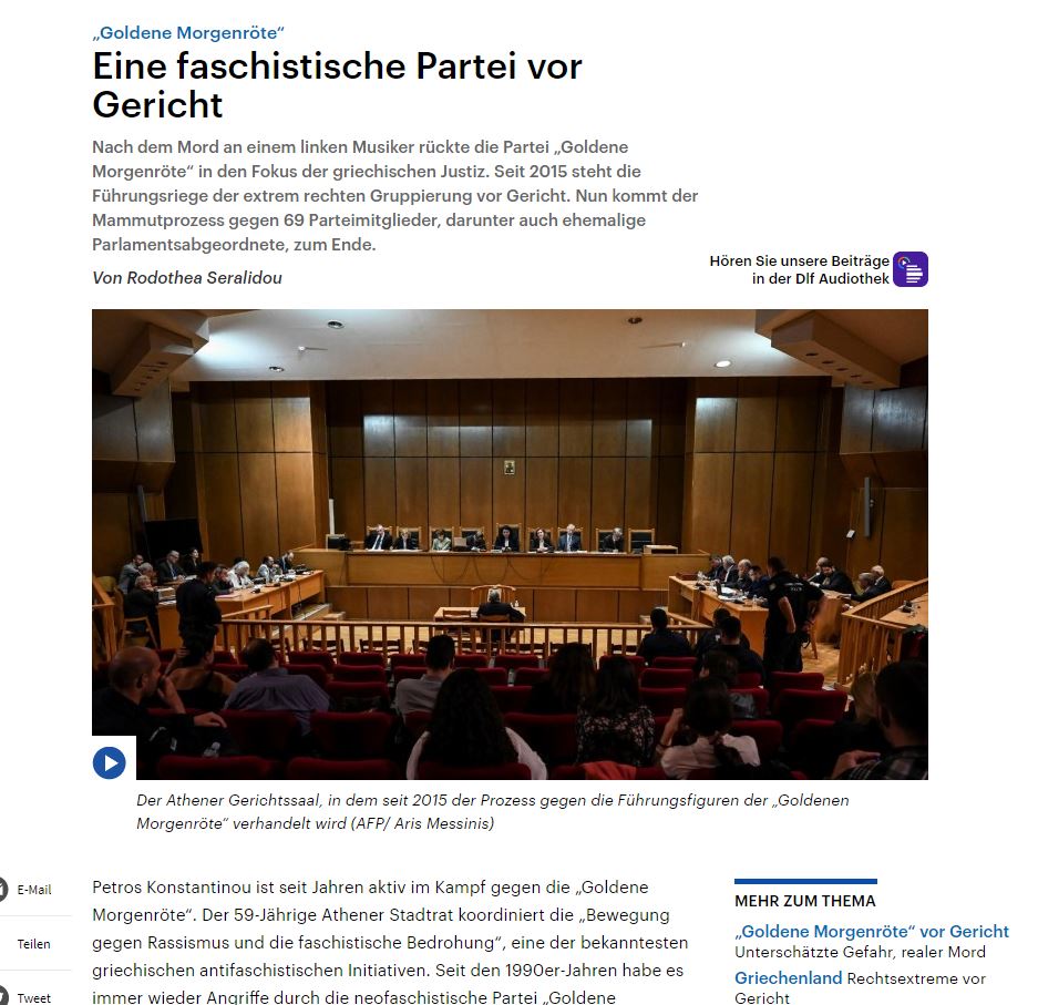 Η σημερινή απόφαση του Δικαστηρίου για την δολοφονία του Παύλου Φύσσα και την δράση της Χρυσής Αυγής μεταδίδεται από το σύνολο των γερμανικών ΜΜΕ.