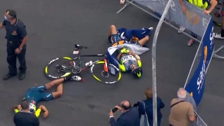 Ο γύρος της Ιταλίας στιγματίστηκε από ένα σοβαρό ατύχημα. Ένα ελικόπτερο πέταξε πολύ χαμηλά, με αποτέλεσμα από τον αέρα που δημιουργήθηκε να τραυματιστούν ποδηλάτες.