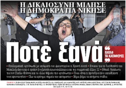 Η Δικαιοσύνη μίλησε, η Δημοκρατία νίκησε • «Παύλο τα κατάφερες» • Εγκληματική οργάνωση με απόφαση του Δικαστηρίου η Χρυσή Αυγή