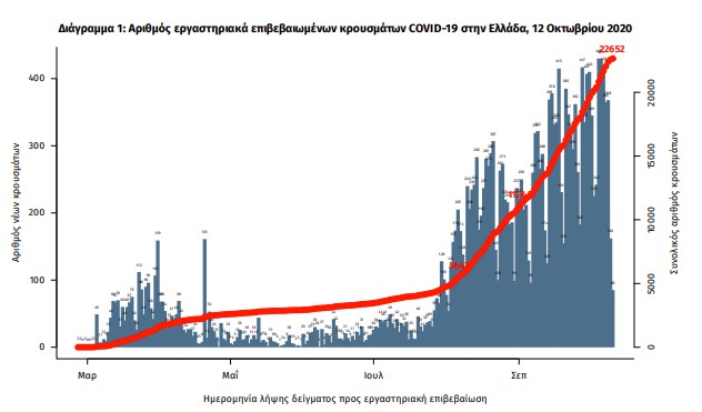 Έτσι, ο συνολικός αριθμός των κρουσμάτων είναι 22.652, εκ των οποίων το 55.7% άνδρες, ενώ 3.315 (14.6%) θεωρούνται σχετιζόμενα με ταξίδι από το εξωτερικό και 9.218 (40.7%) είναι σχετιζόμενα με ήδη γνωστό κρούσμα.