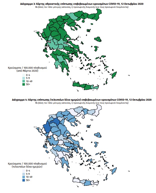 Ο χάρτης αποτυπώνει τη γεωγραφική κατανομή των συνολικών κρουσμάτων COVID-19 (από την αρχή της επιδημίας) ανά Περιφερειακή Ενότητα της χώρας, με βάση την δηλωθείσα διεύθυνση μόνιμης κατοικίας του ασθενούς, ή τη διεύθυνση προσωρινής διαμονής για τους τουρίστες και άλλους προσωρινά διαμένοντες στην Ελλάδα. Συμπεριλαμβάνονται τόσο κρούσματα με ιστορικό ταξιδίου (“εισαγόμενα”) όσο και κρούσματα με πιθανή εγχώρια μετάδοση.