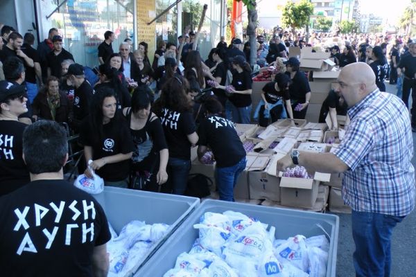 Τα πολυδιαφημισμένα συσσίτια της Χρυσής Αυγής ξεκίνησαν το 2013 κι ενώ η εγκληματική της δράση βρισκόταν σε πλήρη εξέλιξη. Εκμεταλλευόμενη τη φτώχεια και την ανεργία, όπως ακριβώς έκανε το γερμανικό εθνικοσοσιαλιστικό κόμμα τη δεκαετία του 1920, υποχρέωσε σε μια εξευτελιστική διαδικασία τους συμμετέχοντες ενώ τους σέρβιρε λίγο κρέας, λίγες πατάτες και μπόλικη δόση ρατσιστικού δηλητηρίου: Τα συσσίτια ήταν «μόνο για Ελληνες». Ο απροκάλυπτα ρατσιστικός χαρακτήρας των συσσιτίων οδήγησε, υπό το βάρος αντιδράσεων, στην απαγόρευσή τους, όμως η Χρυσή Αυγή είχε ήδη καταφέρει να φτιάξει δεσμούς με κάποια από τα πιο εξαθλιωμένα κομμάτια της ελληνικής κοινωνίας. Ορισμένα από τα μέλη της θα υποστήριζαν, άλλωστε, αργότερα, ενώπιον ανακριτών, πως συμμετείχαν στις φασιστικές δράσεις της οργάνωσης για «λόγους επιβίωσης».