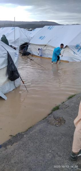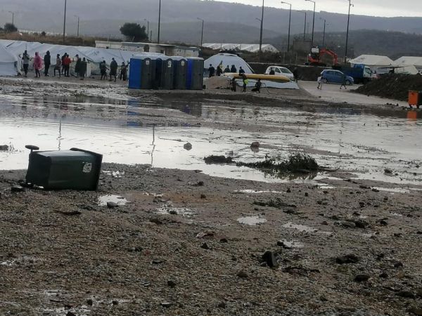 Εμφανής έγινε με την πρώτη βροχή στη Λέσβο η προχειρότητα με την οποία κατασκευάστηκε ο νέος καταυλισμός στο πεδίο βολής του Καρά Τεπέ, μετατρέποντας τη νέα δομή σε έναν απέραντο λασπότοπο.