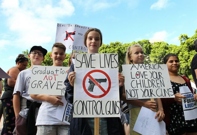 Δυο χιλιάδες χιλιόμετρα μακριά, στη μητρόπολη της Νέας Υόρκης, πελάτες περιμένουν υπομονετικά στην ουρά μπροστά στο οπλοπωλείο Coliseum Gun Traders, που δεν λέει ν’ αδειάσει.