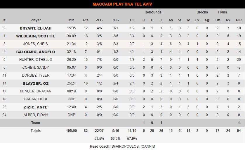 Οι ερυθρόλευκοι ξέφυγαν και με εφτά (38-31) χάρη σε τρίποντο του Πρίντεζη, με την Μακάμπι να βρίσκει απαντήσεις κυρίως από τον Τζόουνς στη δεύτερη περίοδο και να μένει σε κοντινή απόσταση με το τέλος του πρώτου μέρους (44-40).