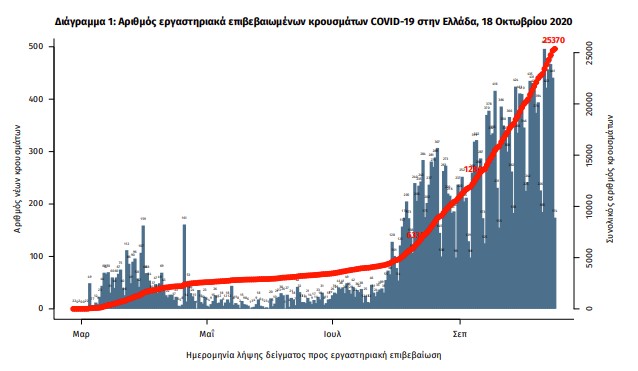 Έτσι, ο συνολικός αριθμός των κρουσμάτων είναι 25.370, εκ των οποίων το 55.6% άνδρες, ενώ 3.508 (13.8%) θεωρούνται σχετιζόμενα με ταξίδι από το εξωτερικό και 10.153 (40.0%) είναι σχετιζόμενα με ήδη γνωστό κρούσμα.