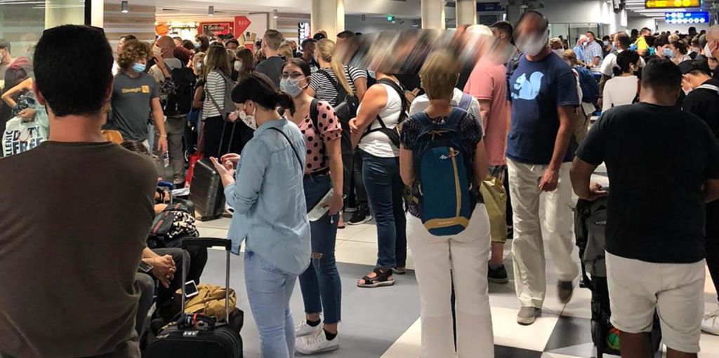 Απίστευτες εικόνες συνωστισμού εν μέσω κοροναϊού καταγράφονται στο αεροδρόμιο Νίκος Καζαντζάκης του Ηρακλείου, το οποίο επίσης πλήττεται από την πανδημία.