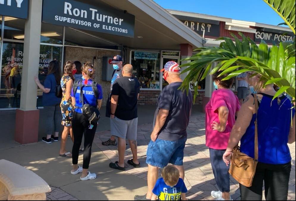Αναρτήσεις σε ιστότοπους κοινωνικής δικτύωσης έδειχναν ουρές ψηφοφόρων να περιμένουν σε 52 από τις 67 κομητείες της Φλόριντα χθες. Εκατοντάδες άνθρωποι περίμεναν, οι περισσότεροι φορώντας μάσκα, μέσα στη βροχή.