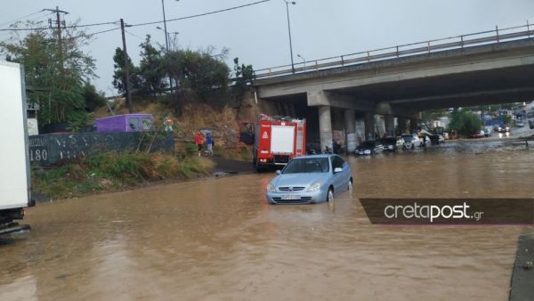 Μετά τις καταστροφές στις καλλιέργειες από τη χαλαζόπτωση, τα ξημερώματα της Τρίτης, από το πρωί πλημμυρικά φαινόμενα καταγράφονται σε μεγάλο τμήμα του Ηρακλείου.