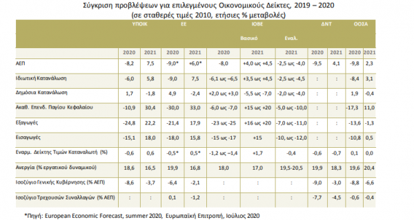 Η ανησυχία είναι: όταν τα μέτρα παύσουν να δούμε εκτίναξη της ανεργίας. Τα στοιχεία δείχνουν πως αν δεν υπήρχαν τα συγκεκριμένα μέτρα, τότε σίγουρα τα ποσοστά ανεργίας θα ήταν άνω του 20% ή και του 25% και ίσως να έφθαναν και στα επίπεδα των περιόδων των μνημονίων. Όμως βάσει των ενδείξεων δραστηριότητας το τρίτο τρίμηνο, στον Τουρισμό και τις Κατασκευές, η ισχυρή πτώση στην απασχόληση θα συνεχιστεί. Στο βασικό σενάριο εξελίξεων το ποσοστό ανεργίας αναμένεται να διαμορφωθεί σε 18% το 2020 και να υποχωρήσει ήπια στο επόμενο έτος (17,0%). Στο σενάριο νέας ισχυρής έξαρσης του COVID-19, σε πολλές χώρες και στην Ελλάδα, η ανεργία θα ενισχυθεί περαιτέρω και ταχύτερα το 2021 από ότι φέτος (19,5% – 20,5%).