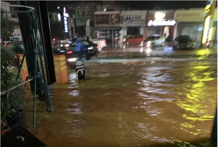 Σε αρτηρίες όπως ο κόμβος του Κλαδισού η κατάσταση πάει από το κακό στο χειρότερο, με τη στάθμη του νερού να έχει φτάσει σε ανησυχητικό επίπεδο και κατάστημα της περιοχής να έχει πλημμυρίσει.