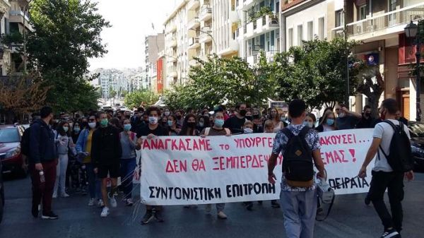 Ανάλογη κινητοποίηση πραγματοποιήθηκε στον Πειραιά. Οι μαθητές συγκεντρώθηκαν στην πλατεία Κοραή και πραγματοποίησαν πορεία έως τα γραφεία της Δευτεροβάθμιας Εκπαίδευσης, διεκδικώντας να γίνεται το μάθημα με ασφάλεια.