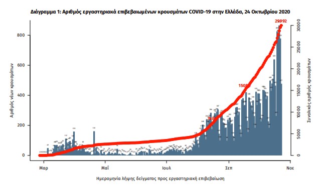 Ένα ακόμα ανησυχητικό στοιχείο είναι πως η χώρα μας έσπασε το «φράγμα» των 900 κρουσμάτων το Σάββατο, αν και σύμφωνα με όσα μας έχει «διδάξει» η πανδημία, τα Σαββατοκύριακα τα κρούσματα είναι μειωμένα, μιας και τα διαγνωστικά κέντρα υπολειτουργούν.