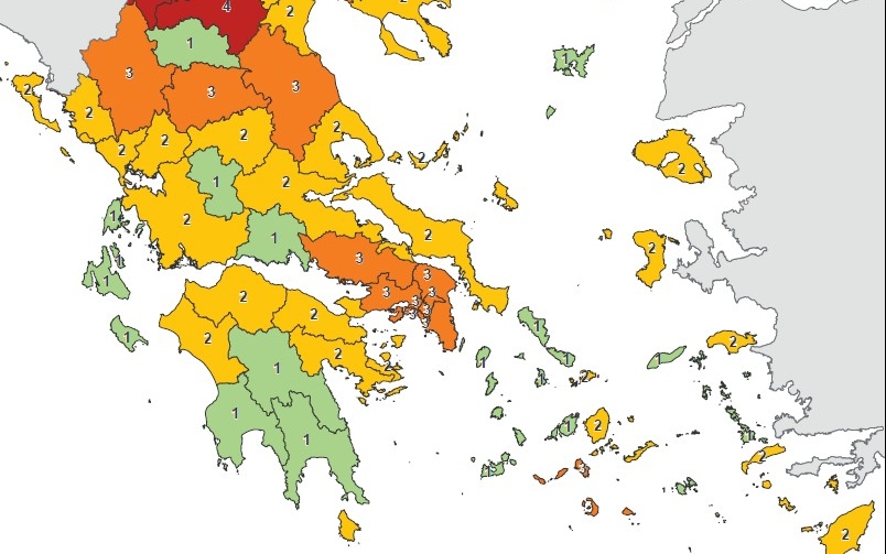Το ίδιο θα ισχύσει και για τις περιφέρειες που θα ανεβούν επίπεδο επικινδυνότητας, δηλαδή θα κιτρινίσουν, αλλά δεν θα αγγίζουν τις επικίνδυνες ζώνες (3 και τέσσερα).