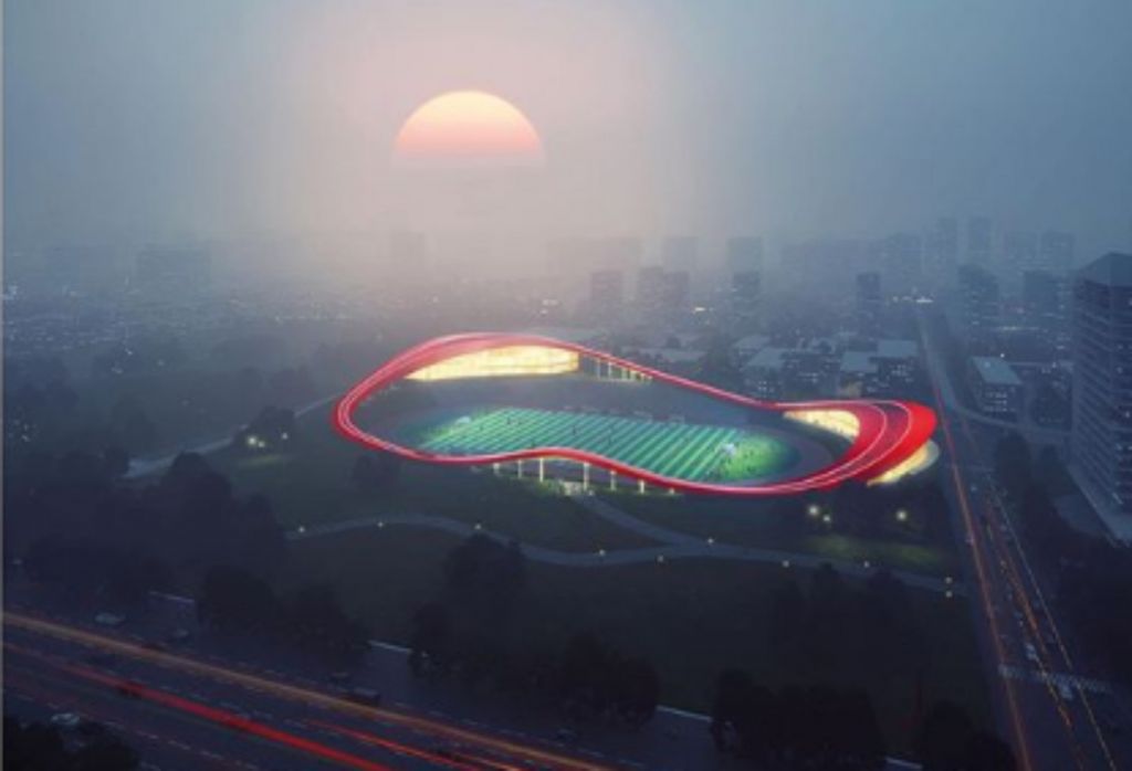 Κτήριο υποδοχής, σκεπασμένο με ένα σε σχήμα θηλιάς μονοπάτι για περίπατο, δημιούργησε στην Τσενγκντού της Κίνας το διεθνές αρχιτεκτονικό γραφείο Powerhouse Company.