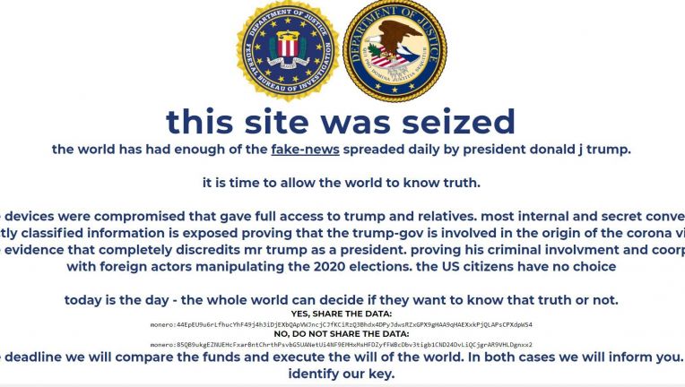 «Αυτός ο ιστότοπος καταλήφθηκε», ανέφερε το μήνυμα (κάτω) που αναρτήθηκε τα λεπτά αυτά στην αρχική σελίδα του ιστότοπου donaldjtrump.com. «Φτάνουν στον κόσμο οι ψευδείς πληροφορίες που διαδίδει ο πρόεδρος καθημερινά».