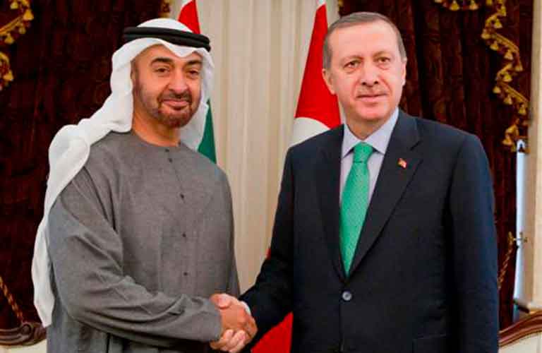 Τα Εμιράτα από την πλευρά τους κατηγορούν τον Ερντογάν για αποικιοκρατικές ψευδαισθήσεις, για στήριξη ισλαμικών ομάδων και δημιουργία ενός εχθρικού άξονα με τον ανταγωνιστή των Εμιράτων, το Κατάρ, στάση δηλαδή, που σπέρνει χάος στον Αραβικό κόσμο. Έτσι, ο σεΐχης Μοχάμεντ μπιν Ζάγεντ, γνωστός με τα αρχικά MBZ επιχειρεί, όλο και πιο έντονα, να δημιουργήσει μια αραβική συμμαχία ενάντια στην τουρκική επιρροή.