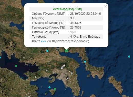 Σύμφωνα με το Γεωδυναμικό Ινστιτούτο του Εθνικού Αστεροσκοπείου Αθηνών, ο σεισμός καταγράφηκε την 00.08 και το επίκεντρό του εντοπίστηκε σε απόσταση 4 χιλιομέτρων βόρεια της Ερέτριας.