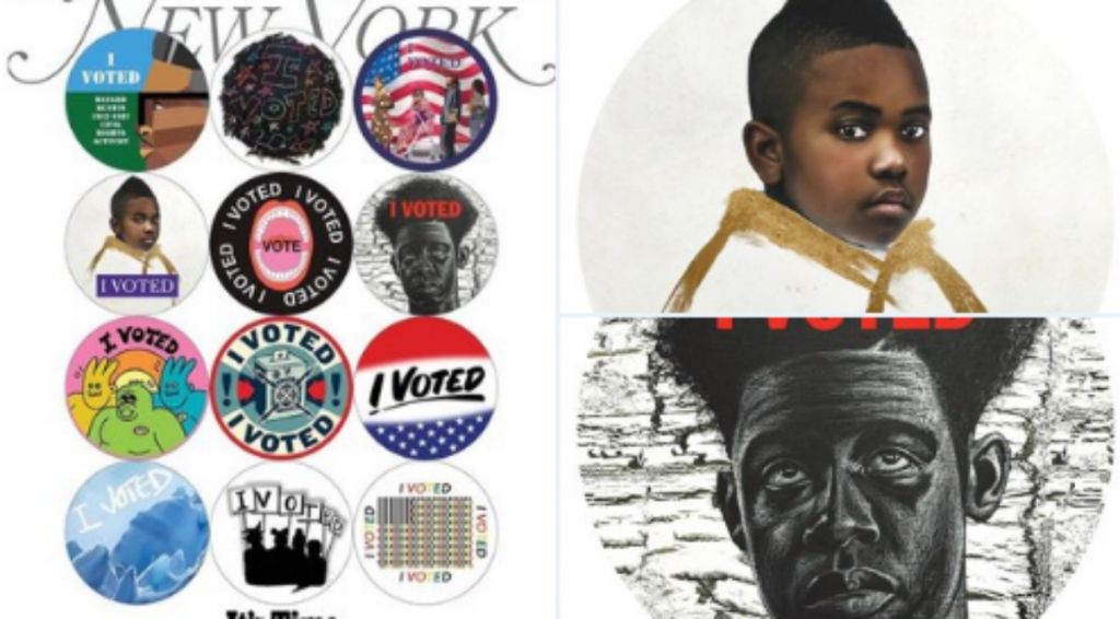 Tο New York Magazine παρήγγειλε σε 48 γνωστούς καλλιτέχνες να δημιουργήσουν αυτοκόλλητα με τη λέξη «Ψήφισα (I voted)», έχοντας υπόψη όλους εκείνους που δεν αξιοποίησαν την ευκαιρία να τιμήσουν την άσκηση του εκλογικού τους δικαιώματος