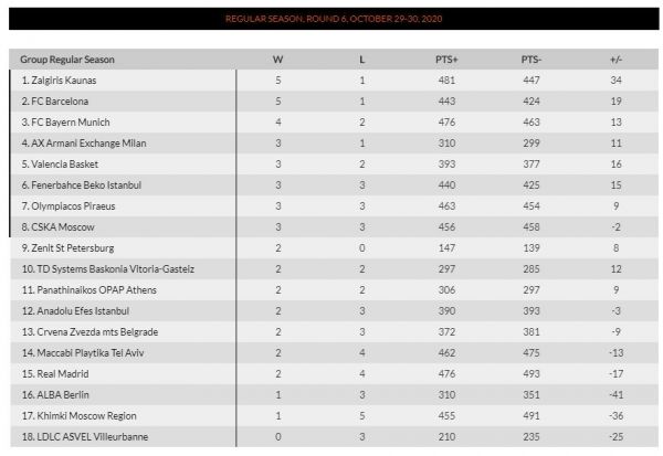 Τα αποτελέσματα και η βαθμολογία της Ευρωλίγκας