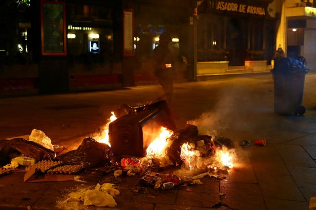 Στο Λογκρόνο, την πρωτεύουσα της επαρχίας Λα Ριόχα, στη βόρεια Ισπανία, μια μικρή ομάδα πυρπόλησε κάδους απορριμμάτων και έσπασε βιτρίνες καταστημάτων.