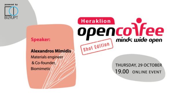 Οι διοργανωτές δηλαδή τα μέλη της ομάδας Bizurpt στο 13ο Open Coffee Heraklion παρουσίασαν το έργο μιας νεοσύστατης εταιρείας με την επωνυμία Biomimetic, μία spin-off του Ιδρύματος Τεχνολογίας και Έρευνας (ΙΤΕ), με έδρα το Ηράκλειο της Κρήτης. Την Biomimetic, το έργο και τις εν γένει δραστηριότητες της εταιρείας γνώρισε στο κοινό ένα από τα μέλη της ιδρυτικής ομάδας ο Αλέξανδρος Μιμίδης (Materials engineer της εταιρείας).