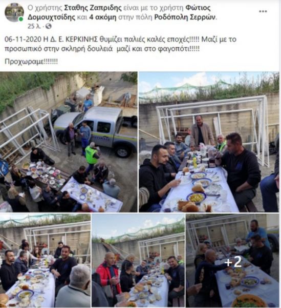 Ο αντιδήμαρχος στην ανάρτησή του έβαλε λεζάντα «Η Δ Ε ΚΕΡΚΙΝΗΣ θυμίζει παλιές καλές εποχές. Mαζί με το προσωπικό στην σκληρή δουλειά, μαζί και στο φαγοπότι!!! Προχωράμε!!!!!».