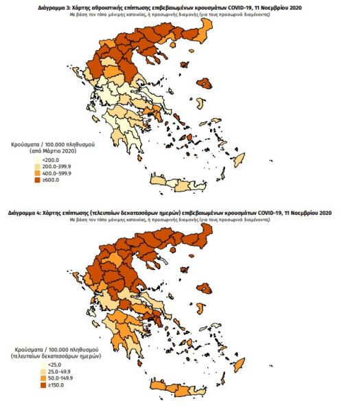 Ο χάρτης αποτυπώνει τη γεωγραφική κατανομή των συνολικών κρουσμάτων COVID-19 (από την αρχή της επιδημίας) ανά Περιφερειακή Ενότητα της χώρας, με βάση την δηλωθείσα διεύθυνση μόνιμης κατοικίας του ασθενούς, ή τη διεύθυνση προσωρινής διαμονής για τους τουρίστες και άλλους προσωρινά διαμένοντες στην Ελλάδα. Συμπεριλαμβάνονται τόσο κρούσματα με ιστορικό ταξιδίου (“εισαγόμενα”) όσο και κρούσματα με πιθανή εγχώρια μετάδοση.
